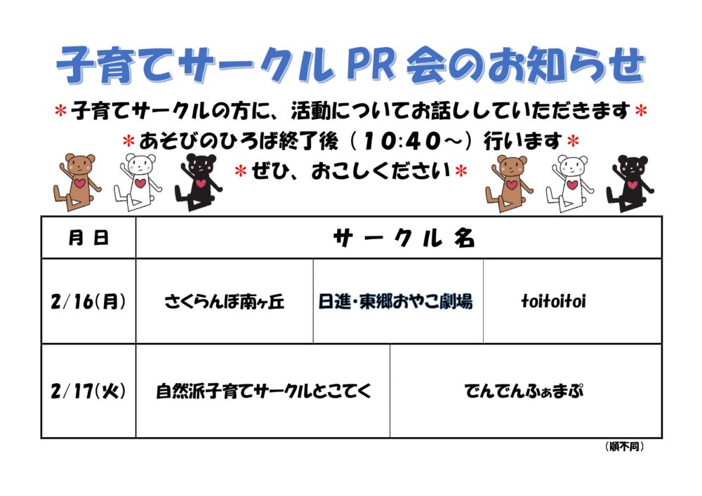 日 時:2月14日(土)・20日(金)14:00~【*20日(金)は、「赤ちゃんひろば」の見学ができます。】